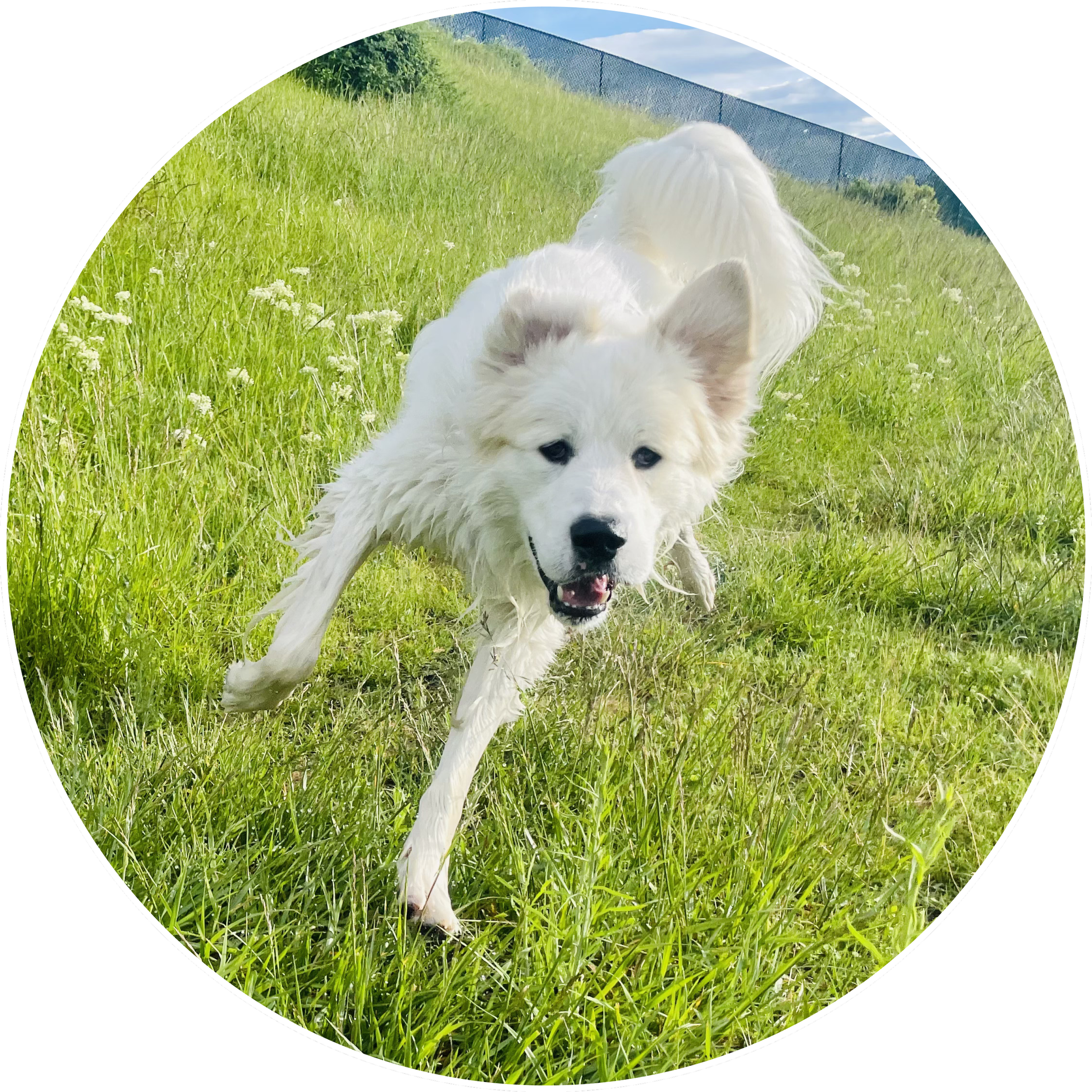 Half Pyrenees, half Lab—and if you didn’t know better, you’d think she’s part Farley, part Waylon. Born with all-knowing eyes, a powerful sniffer, and a master of keep-away since she was just a pup, she fearlessly matches her big brothers in every rumble and tumble. At the same time, she’s an instant mama to little kittens, new chicks, and surely to any rescue animals that find their way to Faraway Farms.