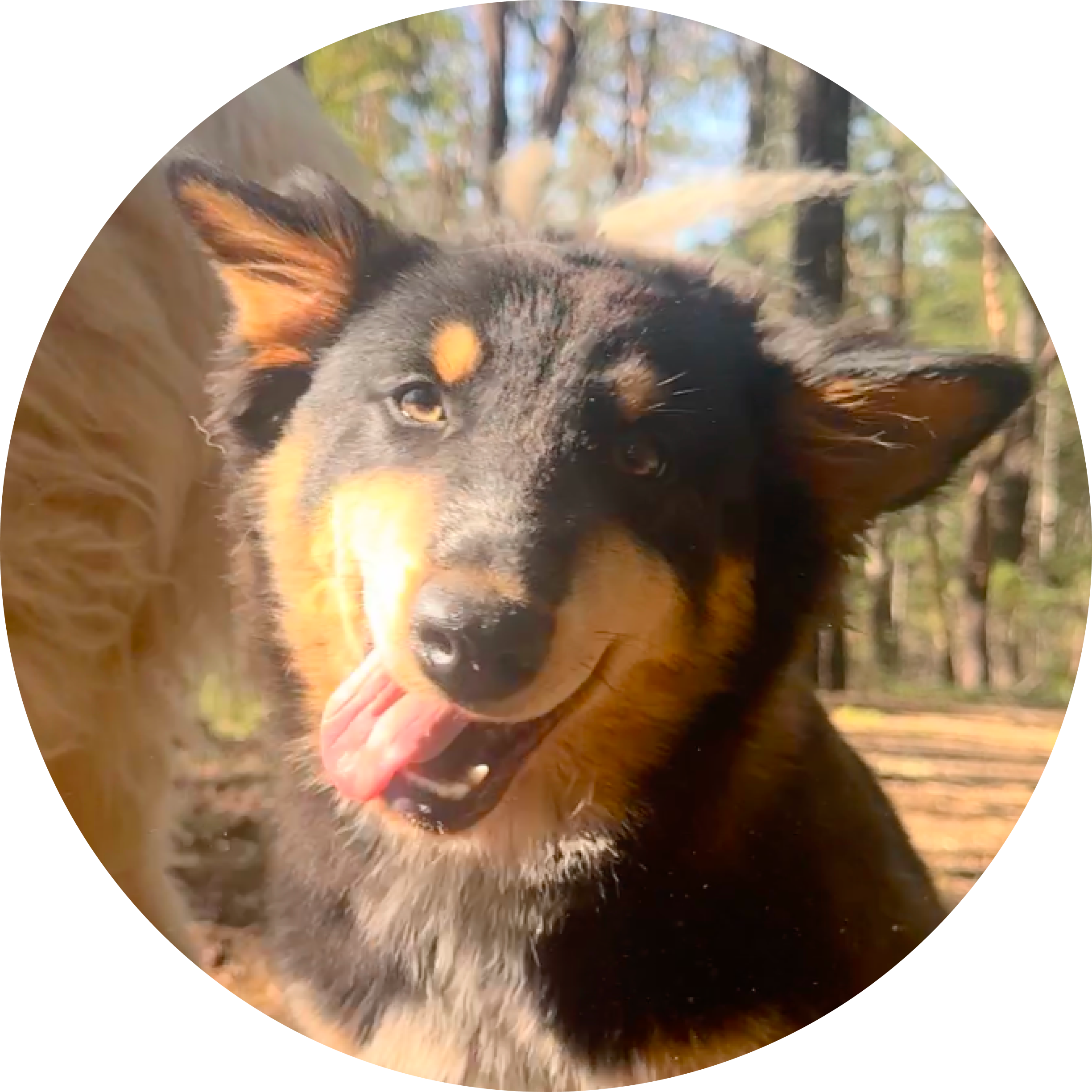 Puts the far in Faraway. He’s how it all started. His mom got him while living in the city and knew right away he’d be the reason she’d finally follow her dream of moving to Mendocino—though she never imagined they’d end up on a hundred acres of land. Now he runs freely across his domain, and it’s said bear sightings have disappeared since his presence on the mountain. When he’s not on patrol, he’s the kind of guy who likes to stop and smell the roses—or roll in the dirt, maybe even snag a stick of butter off the counter.